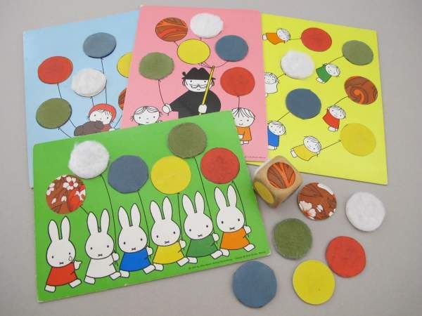 Aufgabe/Ziel: Jeder Spieler erhält eine Spieltafel. Die Rondellen liegen in der Mitte des Tisches. Durch den Würfel wird bestimmt, welche Rondelle ein Spieler auf den entsprechenden Ballon seiner Tafel legen darf. Ist das gewürfelte Material schon besetzt, darf keine Rondelle genommen werden. Der nächste Spieler ist an der Reihe. Sieger ist, wer zuerst alle Ballone mit den richtigen Rondellen belegt hat.