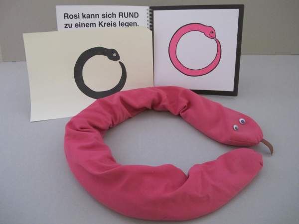 Seiten aus Halbkarton, schwarz, weiss und rosa. 1 Stoffschlange rosa mit Reis gefüllt.