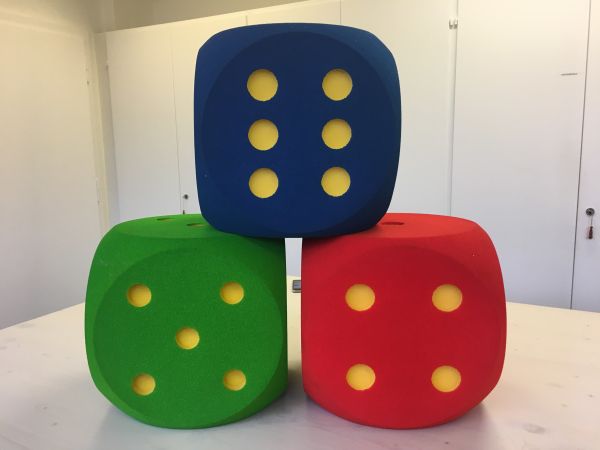 Aufgabe/Ziel: Dieser Würfel kann bei allen Würfelspielen eingesetzt werden. Dank seiner Grösse ist er gut sichtbar und tastbar. Es macht ausserdem Spass, ihn wie einen Ball zu werfen und am Schluss die «Augen» zu zählen.