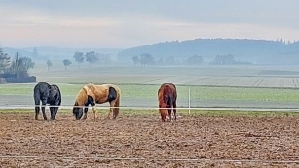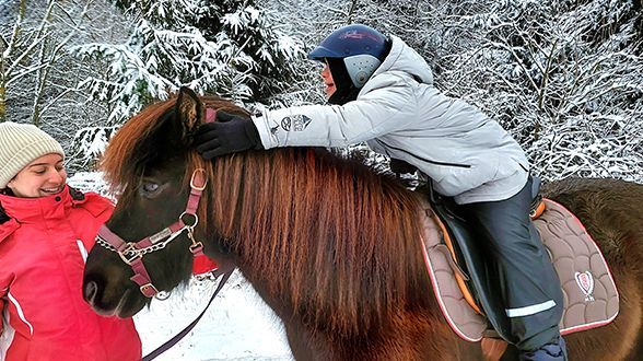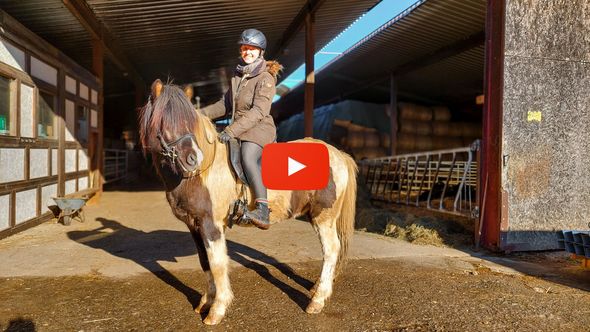 In der Reithalle erlebte ich, wie weit er schon gekommen ist: Er läuft in allen Gangarten, ist konzentriert und motiviert. Beim unserem ersten Ausritt ums Gelände ging er mutig voran. Eisiger Boden? Rutschige Stellen? Kein Problem für diesen selbstbewussten Jungspund.