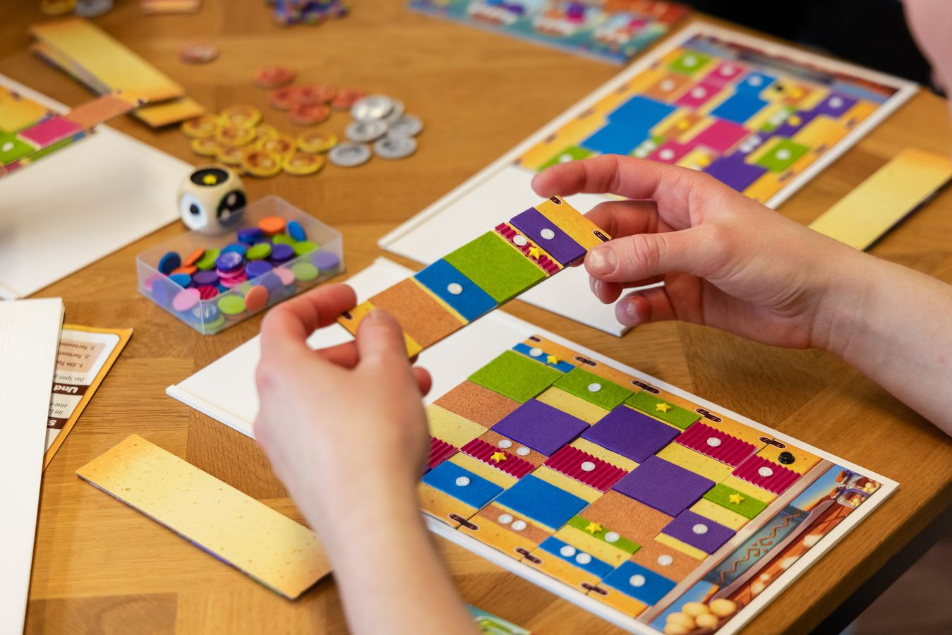 Ist der Entscheid für die Adaption eines Spiels gefallen, macht Sophie Wilmsmeier eine Auslegeordnung. Verschafft sich einen Überblick über die Teile des Spiels. Prüft die Materialien. Was kann sie vom Spiel übernehmen, was muss sie anpassen? Möchte so viel Material wie möglich nutzen, das in ihren Schränken schlummert. Taxiert die Grafik und deren Bedeutung für den Spielablauf. «Meistens geht es nicht nur um Braille-Beschriftung», erklärt sie. «Es geht darum, das Spiel von Grund auf neu zu denken.»